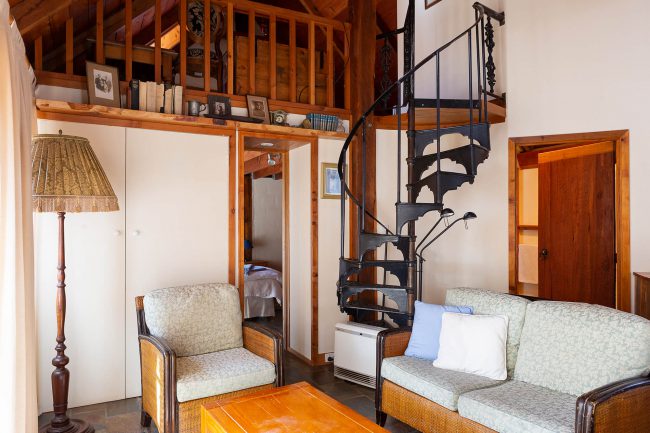 In The Barn you can climb the spiral staircase to the mezzanine bedroom with queen size bed and attic windows, or you may choose to stay downstairs and enjoy a separate bedroom with en-suite bathroom and double spa.